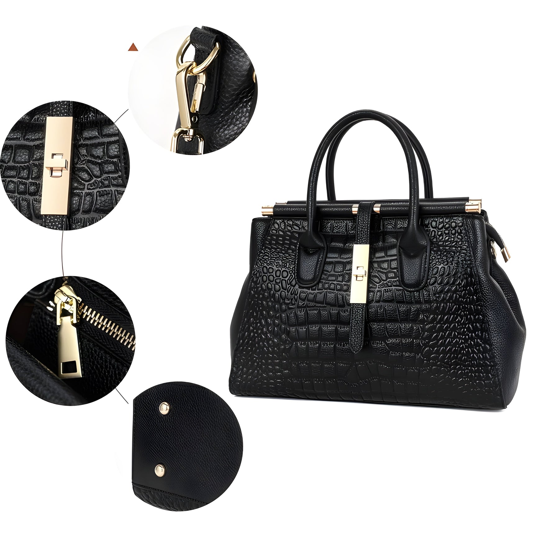 The Evelina Croc Handbag is designed to make a statement with effortless sophistication. Crafted from premium croc-embossed leather, it combines structured elegance with everyday practicality. With its sleek silhouette and versatile size, Evelina adds a touch of luxury to any outfit—day or night.